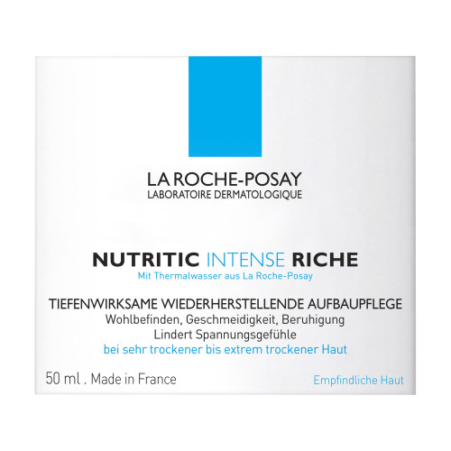 Nutritic baut diese Schicht für Schicht wieder auf, was der Haut ein wohltuendes, gepflegtes Gefühl verleiht. Nutritic Intense Riche mit Thermalwasser aus La Roche-Posay beruhigt gereizte Haut und mildert Anzeichen von starker Trockenheit wie schuppige Haut oder Rötungen. Die reichhaltige Feuchtigkeitspflege sorgt für langanhaltenden Schutz und ein angenehmes Hautgefühl.