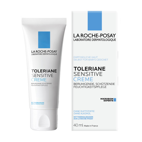 Die La Roche Posay Gesichtscreme ist eine Feuchtigkeitspflege, die das natürliche Mikrobiom der Haut stärkt und schützt und Rötungen, Hautirritationen sowie Spannungsgefühlen entgegenwirkt. Dank ihrer beruhigenden Inhaltsstoffe, wie Glycerin und Thermalwasser aus La Roche Posay, spendet die TOLERIANE Sensitive Creme bis zu 48 Stunden intensive Feuchtigkeit und stärkt die Hautschutzbarriere. Da die feuchtigkeitsspendende Creme auf Duftstoffe und Alkohole verzichtet, eignet sie sich bei zu Allergien neigender Haut und zarter Babyhaut.