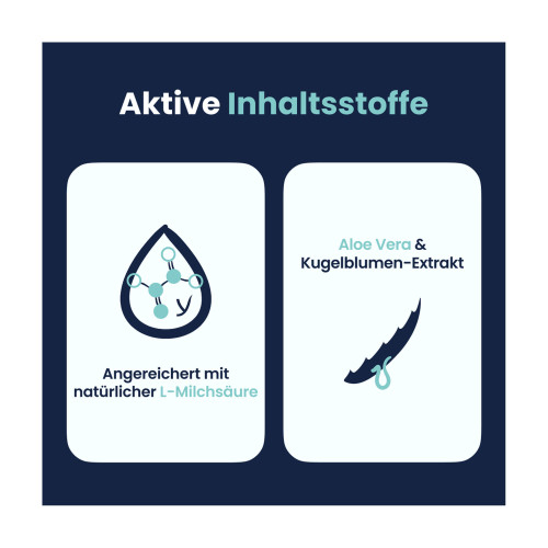 - Mit natürlicher L-Milchsäure, Aloe Vera und Kugelblume-Extrakt.