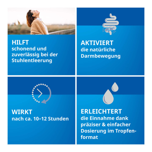 Der Wirkstoff verhindert, dass dem Darminhalt Wasser und Salze entzogen werden. Gleichzeitig fördert er das Einströmen von Wasser und Salzen in den Darm. Dadurch gewinnt der Darminhalt an Volumen und wird weicher, was zu einem Stuhldrang und einer erleichterten Stuhlentleerung führt.