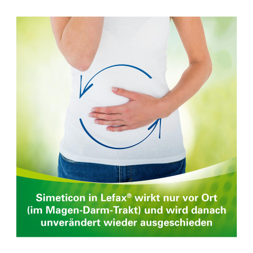 Lefax Enzym, Kautabletten. Wirkstoffe: Simeticon / Pankreas-Pulver vom Schwein. Anwendungsgebiete: Traditionell angewendet als mild wirkendes Arzneimittel zur Unterstützung der Verdauungsfunktion. Warnhinweis: Enthält Sucrose und Glucose (Zucker).