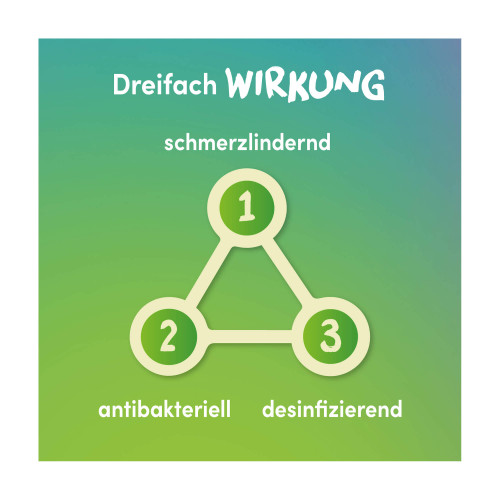 Die Wirkstoffe sind: Tyrothricin, Cetrimoniumbromid und Lidocain.