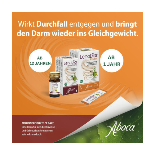 Lenodiar Kinder eignet sich zur Behandlung von Durchfall mit verschiedenen Ursachen (Virusinfektion, grippale Infekte mit Durchfall, funktioneller Durchfall, durch die Einnahme von Arzneimitteln verursachte iatrogene Diarrhö, Reisedurchfall). Es wird empfohlen, das Kind mit ausreichend Flüssigkeit zu versorgen, um die Gefahr einer Dehydrierung zu vermeiden.
