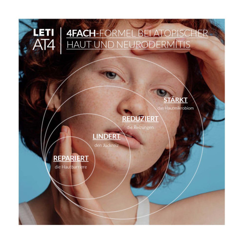 Die wasserabweisende LETI AT4 Defense Gesichtscreme SPF 50+ ist der ideale Begleiter im Urlaub und im Alltag. Die Creme schützt vor reizenden Pollen- und Milbenallergenen aus der Luft und Umweltfaktoren (Luftverschmutzung, UV- und Infrarot-Strahlung, Wasser, Chlor, Schweiß oder Sand etc.), indem sie nach dem Auftragen einen atmungsaktiven Schutzfilm bildet. Sie mindert Reizungen trockener oder zu Neurodermitis neigender Haut und fördert ein gesundes Hautmikrobiom. Entwickelt für Kinder ab 12 Monaten und Erwachsene.