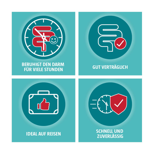 Der Wirkstoff greift direkt an Rezeptoren im Darmbereich an. So kann er Darmbewegungen, die den Darminhalt weitertransportieren teilweise verhindern und damit den Stuhldrang und die Stuhlfrequenz reduzieren. Zusätzlich bewirkt Loperamid im Enddarmbereich eine Muskelanspannung des Schließmuskels.