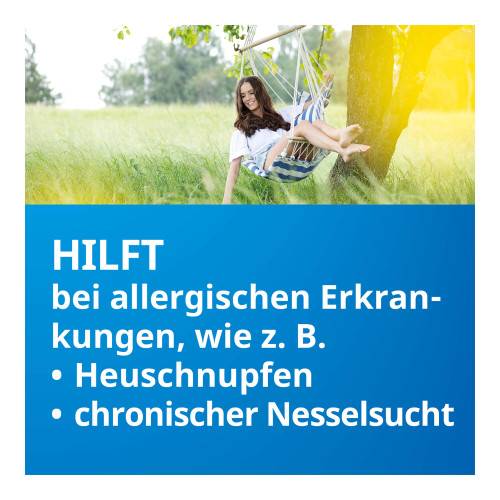 zur Behandlung der Beschwerden bei allergisch bedingtem Schnupfen (z.B. Heuschnupfen) und bei Nesselsucht unbekannter Ursache (chronische idiopathische Urtikaria).