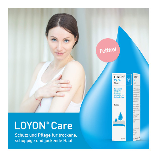 Das LOYON Care Fluid befeuchtet, schützt und pflegt trockene, schuppige und juckende Haut schnell und langanhaltend für bis zu 16 Stunden. Die angenehm leichte Textur von LOYON Care ist fettfrei und damit ideal für die tägliche und lokale Anwendung insbesondere auf behaarten Körperpartien, wie z. B. der Kopfhaut, geeignet.