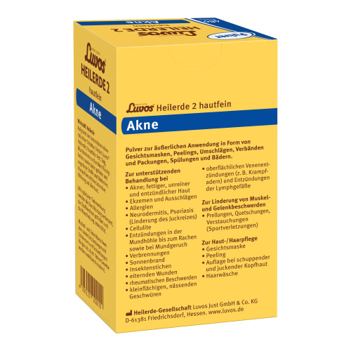 Luvos® Heilerde hat eine optimale mineralische Struktur und wirkt rein physikalisch über ihre große Oberfläche und die bei der Trocknung entstehende Saugwirkung von innen nach außen. Fett, Talg und andere Flüssigkeiten sowie darin gelöste und ungelöste Stoffe und Bakterien werden aufgenommen und gebunden. Hierin beruht die intensive Wirkung der Luvos® Heilerde auf die Haut. Die Nervenfunktionen werden unterstützt, die Funktion der Hormondrüsen normalisiert, Kreislauf und Stoffwechsel (Versorgung des Gewebes mit Sauerstoff und Nährstoffen, Abtransport von Stoffwechselschlacken) werden angeregt.