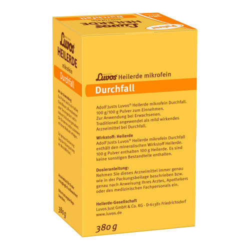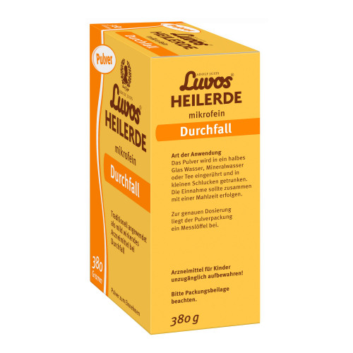 Luvos-Heilerde mikrofein Durchfall Pulver, Pulver zum Einnehmen. Wirkstoff: Heilerde. Anwendungsgebiete: Traditionell angewendet als mild wirkendes Arzneimittel bei Durchfall. Zur Anwendung bei Erwachsenen.