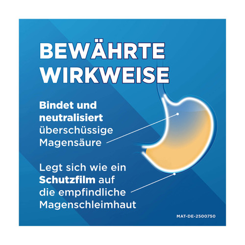 Die Wirkstoffe binden und neutralisieren Magensäure. Das enthaltene Magnesium und Aluminium bildet mit Magensäure schwer lösliche Salze, die beim Stuhlgang ausgeschieden werden. Derart wirken die Stoffe gegen Sodbrennen, Aufstoßen und andere säurebedingte Magenbeschwerden. Zudem verringert sich die Gefahr, dass infolge einer Übersäuerung Geschwüre im Magen-Darm-Bereich auftreten.