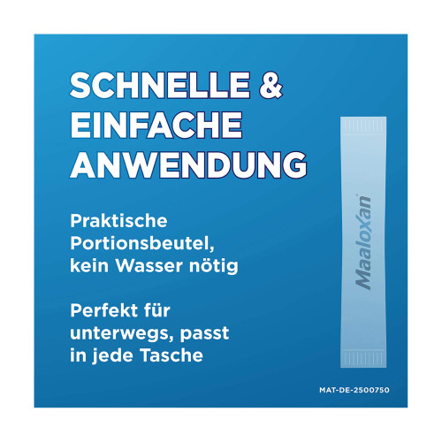 Bei Bedarf mehrmals täglich einen Beutel Maaloxan 25 mVal Suspension einnehmen.