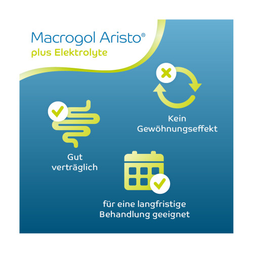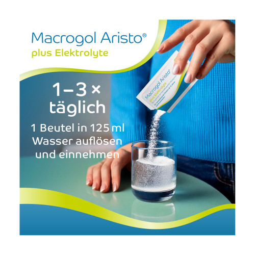 Macrogol Aristo plus Elektrolyte 13,72 g, Pulver zur Herstellung einer Lösung zum Einnehmen. Anwendungsgebiete: Zur Behandlung von chronischer Verstopfung bei Erwachsenen und Jugendlichen über 12 Jahren.