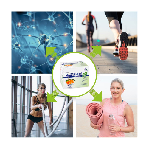 Nahrungsergänzungsmittel mit 400 mg Magnesium pro Stick zum Erhalt der Muskelfunktion und normaler Knochen, zur Unterstützung des Energiestoffwechsels und des Nervensystems. Enthält Sorbit.