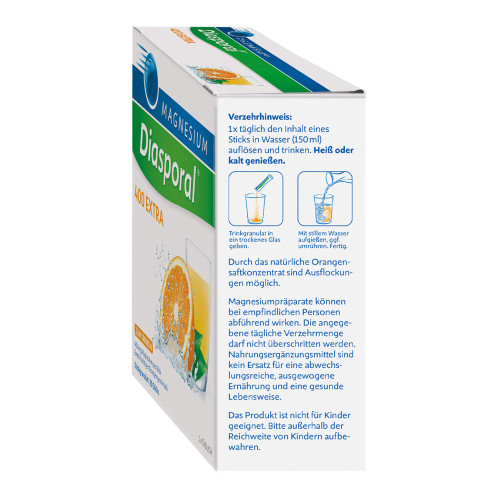 Magnesium-Diasporal® 400 EXTRA enthält reines Magnesiumcitrat, das als organische Verbindung körperfreundlich und schnell aktiv ist. Das Trinkgranulat schmeckt extra fruchtig und versorgt den Körper zusätzlich mit Flüssigkeit. Für den erhöhten Magnesiumbedarf.