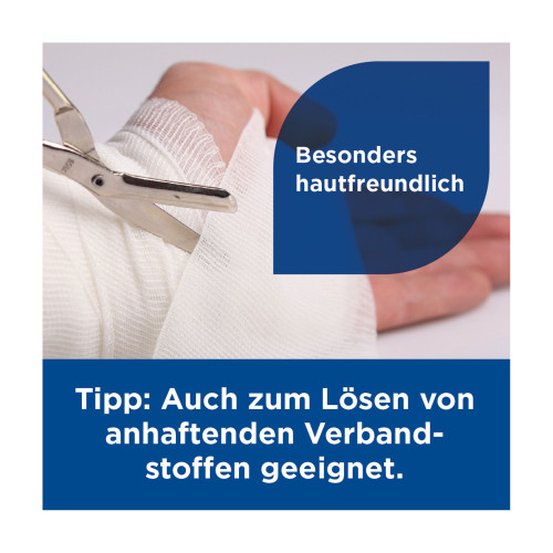 Zur Befeuchtung der Wunde handelsübliche Verbände und Wundauflagen (z. B. Kompressen, Gaze) ausreichend mit MediGel® Wundreinigungsspray befeuchten und ca. 10-15 Minuten auf die Wunde auflegen. Nach der Einweichphase können Verkrustungen und anhaftende Verbände gelöst werden.