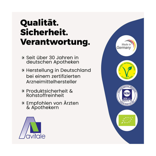 Avitale Melatonin Depot 1,9 mg ist lactosefrei, glutenfrei, frei von Farbstoffen und geeignet für eine vegane Ernährung.