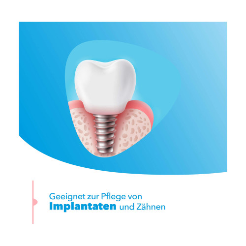 Die Mundspülung wirkt indirekt entzündungshemmend, unterstützt den natürlichen Heilungsprozess und ist auch ideal für Zahnimplantate.
