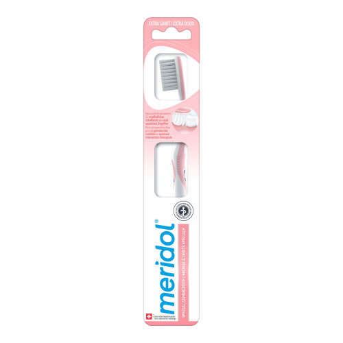 Putzen Sie gereiztes oder sehr empfindliches Zahnfleisch schonend mit der meridol® Spezial Zahnbürste. Diese Zahnbürste ist für die Anwendung nach chirurgischen Eingriffen und für die sanfte Reinigung von sehr empfindlichem Zahnfleisch geeignet. Sie wird auch von Zahnärzt:innen* empfohlen.