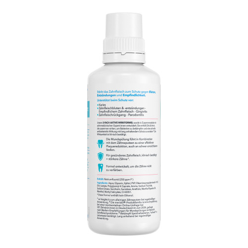 Nach der Zahnreinigung 2x täglich 30 Sek. lang spülen (15 ml, unverdünnt verwenden). Nicht schlucken oder ausspülen.