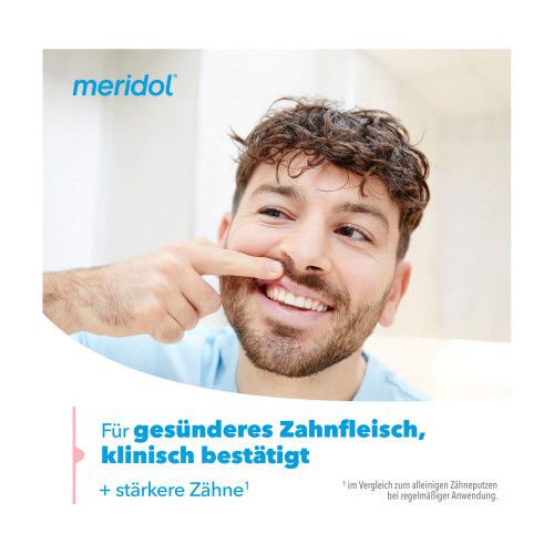 Schützen Sie Zahnfleisch und Zähne mit der meridol Zahnfleischschutz Mundspülung. Deren sanfte, wirksame 2-fach Wirkformel wurde von Experten für schnelle** Bekämpfung der Ursache* von Zahnfleischbluten und -entzündungen und lang anhaltenden Schutz** entwickelt.