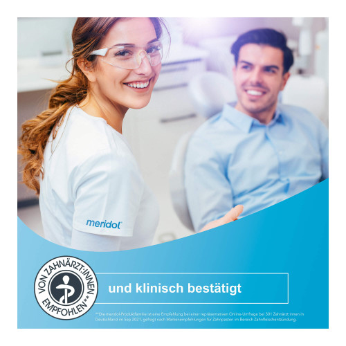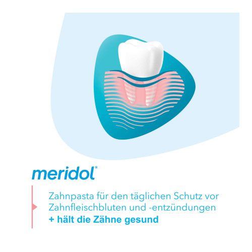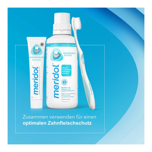 Für den optimalen Schutz verwenden Sie die meridol Zahnfleischschutz Zahnpasta als Teil Ihrer täglichen Mund- und Zahnpflege mit der meridol Zahnfleischschutz Mundspülung (PZN 03713120), der meridol Zahnfleischschutz Zahnbürste und der meridol Zahnseide (PZN 04123449).