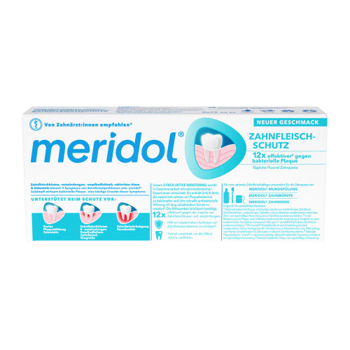 Schützen Sie Zähne und Zahnfleisch mit der meridol Zahnfleischschutz Zahnpasta. Diese wurde von Experten für schnelle** Bekämpfung der Ursache* von Zahnfleischbluten und -entzündungen und Schutz gegen Wiederauftreten der Entzündung* entwickelt. Die sanfte, wirksame 2-fach Wirkformel bietet lang anhaltenden Schutz.