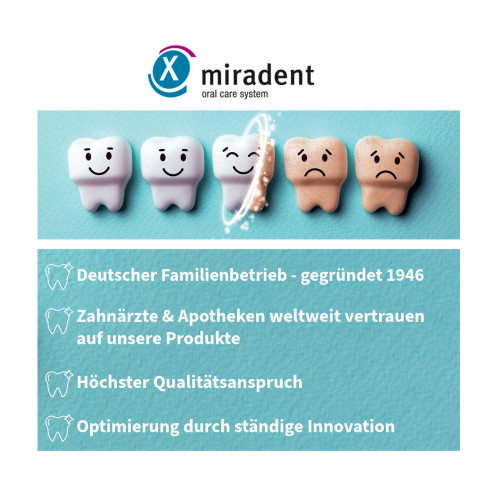 Das miradent AQUAMED® Gel wurde speziell für die tägliche Mundpflege entwickelt und ist ideal bei einem spürbar trockenen Mundgefühl. Die ausgewogene Rezeptur mit Xylitol, dem natürlichen Schutzenzym Lysozym sowie Yerba Santa (dem „heiligen Kraut“) versorgt die Mundschleimhaut intensiv mit Feuchtigkeit und unterstützt so ein angenehmes Mundgefühl – Tag und Nacht.