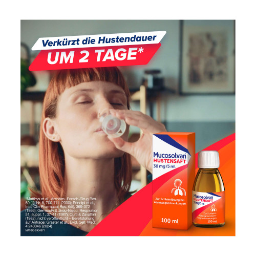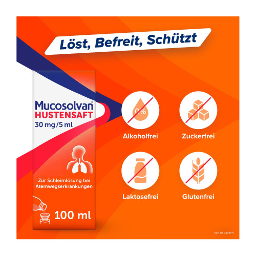 MUCOSOLVAN Hustensaft 30 mg/5 ml ist ein Arzneimittel zur Schleimlösung bei Atemwegserkrankungen mit zähem Schleim (Expektorans).