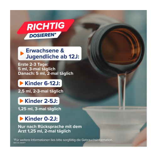 | Jugendliche ab 12 Jahren und Erwachsene | 5 ml | 2-mal täglich | zu oder unabhängig von den Mahlzeiten |