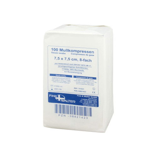 Mullkompressen 7,5x7,5 cm unsteril 8-fach 100 St