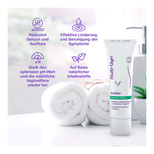 Fischiger Geruch und wässriger Ausfluss? Das spricht für eine bakterielle Vaginose. Multi-Gyn® ActiGel behandelt eine bakterielle Vaginose und die damit verbundenen Symptome wie übermäßigen Ausfluss und unangenehmen Scheidengeruch. Multi-Gyn® ActiGel lindert die Symptome effektiv.