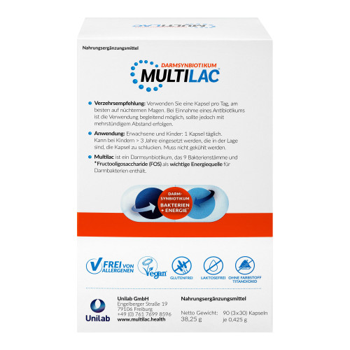 In Schwangerschaft oder Stillzeit kann MULTILAC® auch verwendet werden, da es nur Bakterienstämme enthält, die auch natürlicherweise im Darm vorkommen, sowie Fructooligosaccharide.