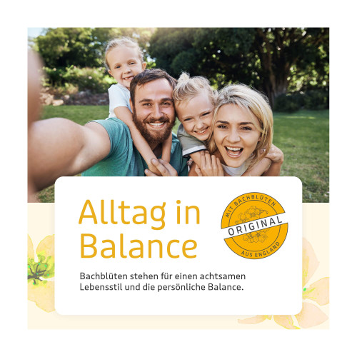 Hergestellt mit der Original Bachblütenmischung nach Edward Bach aus England: Kirschpflaume, Weiße Waldrebe, Drüsentragendes Springkraut, Gelbes Sonnenröschen, Doldiger Milchstern.