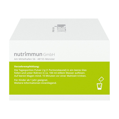Die Tagesportion Pulver 2 g (1 Portionsbeutel) in ein leeres Glas füllen und unter Rühren in ca. 100 ml stillem Wasser auflösen. Auf leeren Magen mind. 15 Minuten vor einer Mahlzeit trinken.
