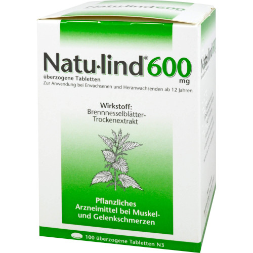 NATULIND 600 mg überzogene Tabletten. Wirkstoff: Urtica-Arten. Anwendungsgebiete: Rheumatische Beschwerden, unterstützende Behandlung; Durchspülung der Harnwege; Vorbeugung gegen Grießbildung in den Harnwegen.