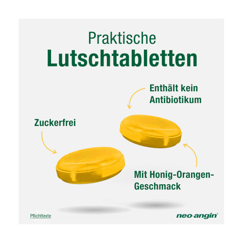neo-angin Benzydamin gegen akute Halsschmerzen Zitronengeschmack sind gelbe, runde Lutschtabletten mit einem Durchmesser von 19 mm mit Zitronengeschmack.