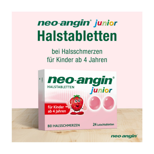 neo-angin junior Halstabletten sind ein Medizinprodukt zum Schutz von Mund- und Rachenschleimhaut, insbesondere bei Halsschmerzen.