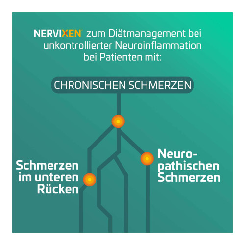 NERVIXENTM ist ein Lebensmittel für besondere medizinische Zwecke (bilanzierte Diät) zum Diätmanagement bei unkontrollierter Neuroinflammation bei Patienten mit chronischen Schmerzen wie Schmerzen im unteren Rücken und neuropathischen Schmerzen.