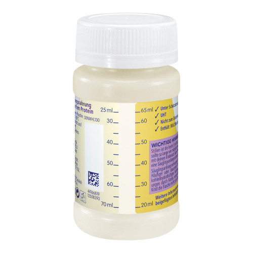 Die Trinkmenge je Fläschchen kann individuell unterschiedlich sein. Die empfohlene Trinkmenge und Anzahl der Fläschchen sind Richtwerte. Nach dem 4. Monat können Sie in Absprache mit dem Kinderarzt mit der Fütterung von Gläschen und Breien beginnen. Mit jeder Beikostmahlzeit sollte ein Fläschchen entfallen.
