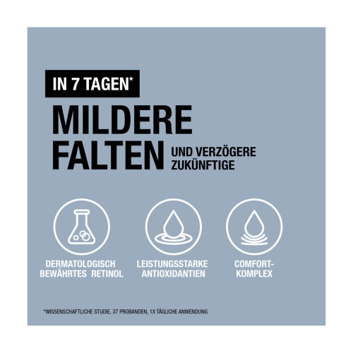 Enthält Vitamin A (Retinol). Prüfen Sie vor der Anwendung Ihre Tagesdosis. Falls Sie schwanger sind oder eine Schwangerschaft planen, wenden Sie sich vor der Anwendung an Ihren Arzt.