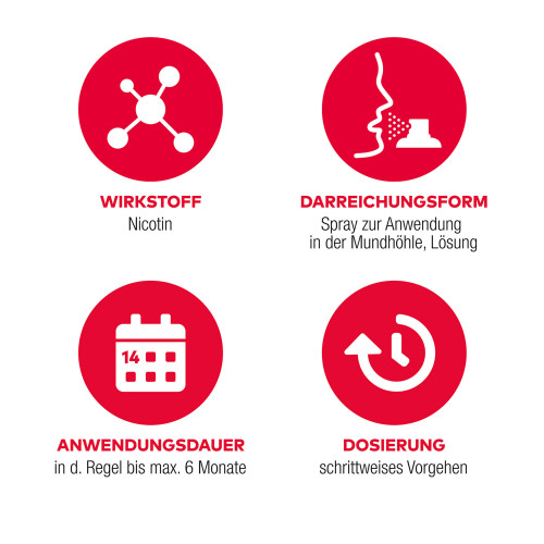 - Der Wirkstoff ist Nicotin. Ein Sprühstoß setzt 1 mg Nicotin in 0,07 ml Lösung frei. 1 ml Lösung enthält 13,6 mg Nicotin.
