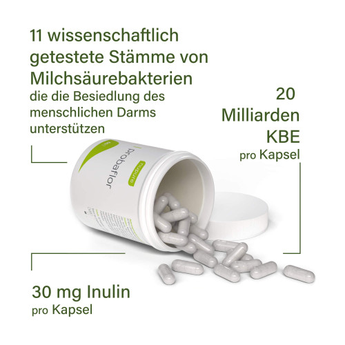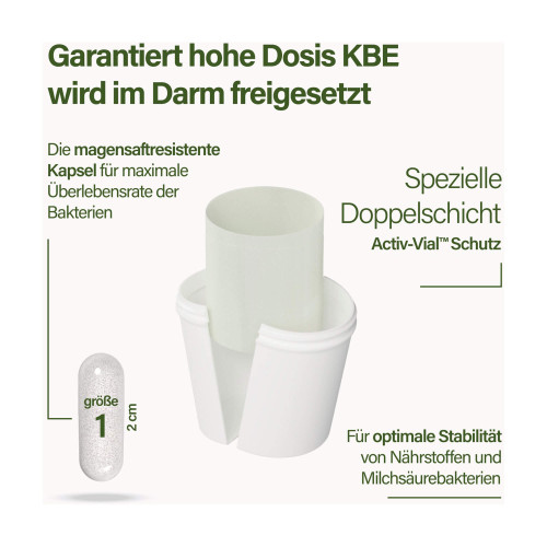 Nupure probaflor enthält 20 Mrd. KBE (Koloniebildende Einheiten) pro Kapsel. Um diese im Vergleich zu ähnlichen Produkten hohe Menge an Lebendkulturen zu gewährleisten, wird nupure probaflor unter Luftausschluss verpackt. Dies sichert die Lieferung eines vor Sauerstoff und Feuchtigkeit geschützten Produkts.