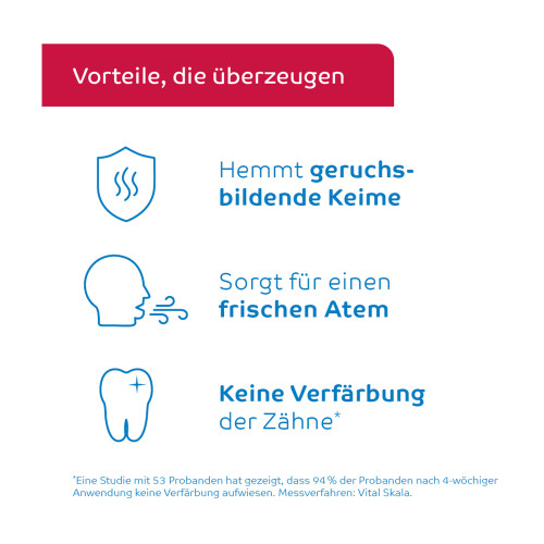 - Zur Bekämpfung von geruchsbildenden Bakterien im Mundraum.