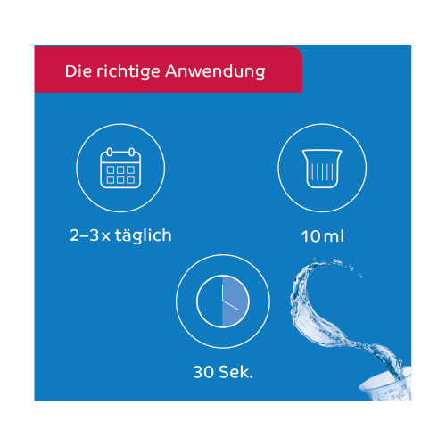 Den Mund je nach Bedarf 2-3 mal täglich ca. 30 Sekunden spülen.