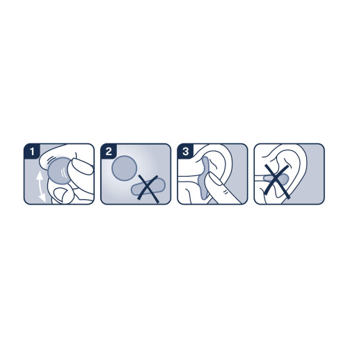 Zur Kugel formen und sanft vor dem Gehörgang andrücken.