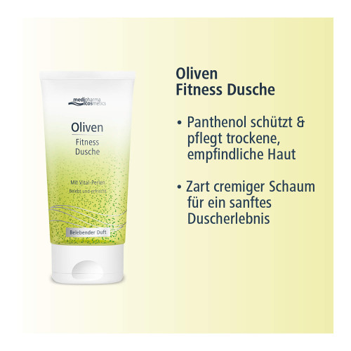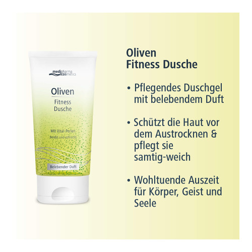 Erwecken Sie Ihre Sinne und verwöhnen Sie sich mit der medipharma cosmetics Oliven Fitness Dusche – eine wohltuende Auszeit für Körper und Geist, die Sie jeden Tag genießen können.