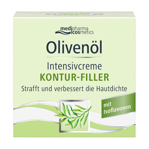 Die medipharma cosmetics Olivenöl Intensivcreme Kontur-Filler wurde speziell für die Bedürfnisse trockener Haut entwickelt. Sie enthält kaltgepresstes Olivenöl sowie eine ausgewählte Kombination aus Isoflavonen und Hyaluronsäure. Die reichhaltige Formulierung unterstützt die Hautpflege und versorgt sie mit Feuchtigkeit, wodurch sie geschmeidiger erscheint.