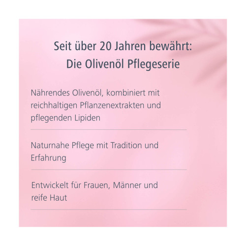 Medipharma cosmetics Olivenöl bietet eine breite Auswahl an Pflegeprodukten, die auf die unterschiedlichen Bedürfnisse Ihrer Haut abgestimmt sind. Die Gesichtspflege umfasst milde Reinigungsprodukte und nährende Cremes, die sich harmonisch in Ihre tägliche Pflegeroutine einfügen. Körperlotionen mit Olivenöl pflegen die Haut und hinterlassen ein angenehmes Hautgefühl. Die verschiedenen Pflegeprodukte ergänzen sich optimal und können je nach individuellen Bedürfnissen kombiniert werden. Die Formulierungen basieren auf dem Grundsatz der sanften Pflege. Die Kombination sorgfältig ausgewählter Inhaltsstoffe unterstützt die natürlichen Funktionen der Haut. Im Zentrum der Pflegeprodukte steht ein kaltgepresstes Olivenöl, kultiviert und produziert unter den optimalen Bedingungen des mediterranen Klimas, das seit Jahrhunderten für seine pflegenden Eigenschaften geschätzt wird. Die medipharma cosmetics Olivenöl Produkte sind das Ergebnis langjähriger Forschung und Entwicklung, die auf die Synergie von Natur und Wissenschaft setzen. Jedes Produkt wird unter strengen Qualitätskontrollen hergestellt, um Ihnen die beste Pflege zu garantieren. Vertrauen Sie auf die bewährten, dermatologisch getesteten Produkte, um Ihrer Haut die Pflege zu geben, die sie verdient.
