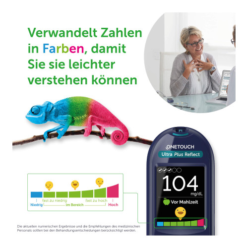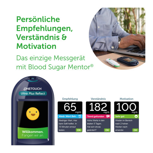 - Und wenn Sie die OneTouch Reveal® Mobile App nutzen, gibt Ihnen der Blutzucker-Mentor weitere Informationen, die Ihnen helfen können, Ihren Diabetes in den Griff zu bekommen. **
