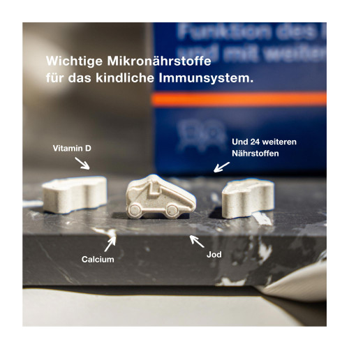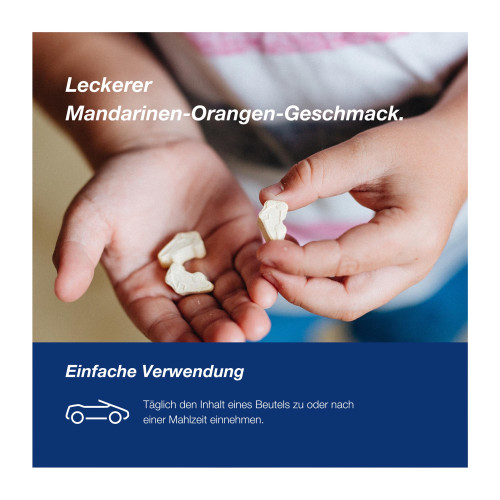 Mit Calcium und Vitamin D, die für das normale kindliche Wachstum und die Knochenentwicklung benötigt werden sowie Jod, das ebenso zum normalen kindlichen Wachstum beiträgt.